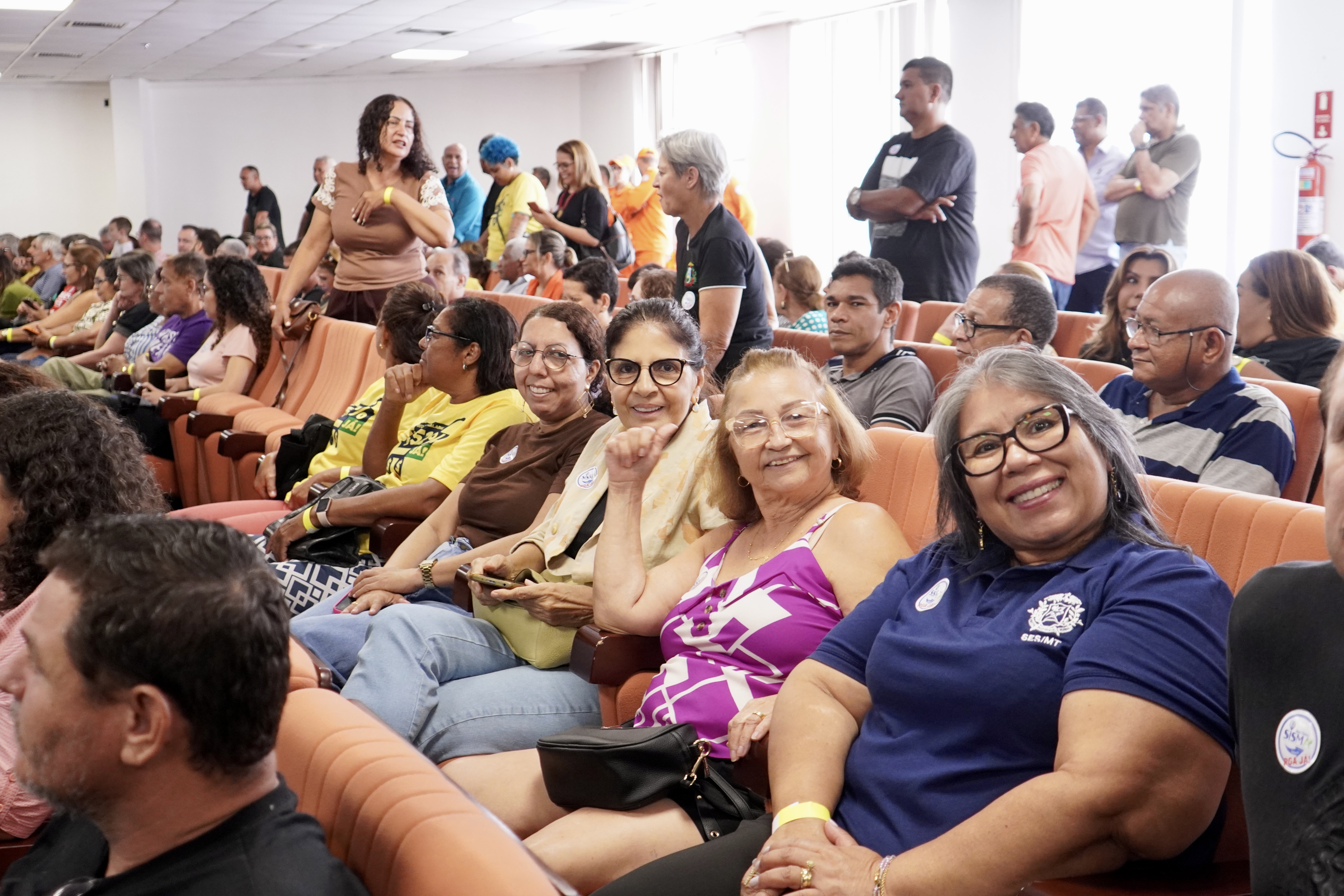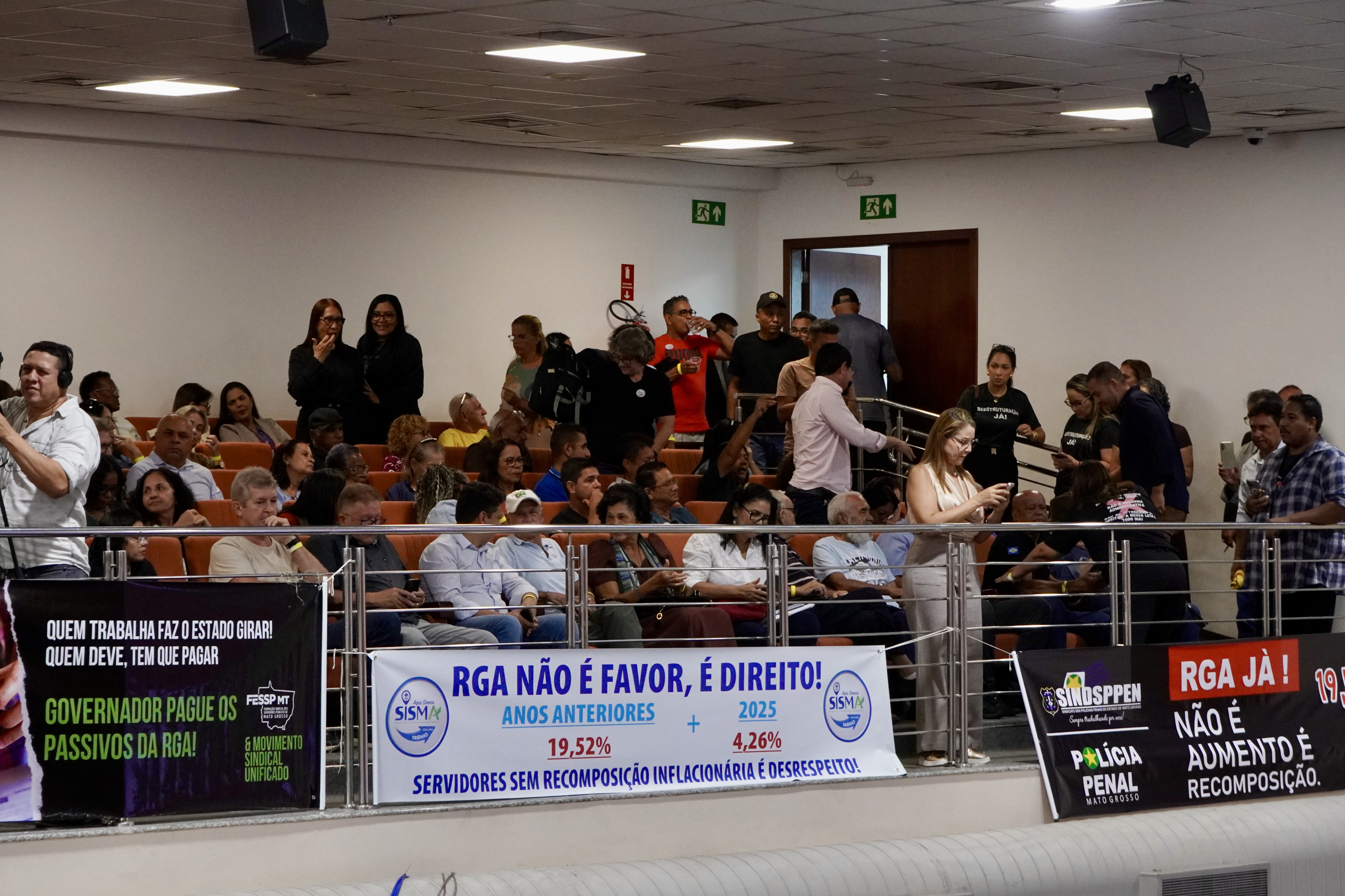 Quase duzentos servidores da ativa e aposentados ligados ao Sindicato dos Servidores Públicos da Saúde de Mato Grosso (SISMA-MT) participaram, nesta quarta-feira (14), de uma grande mobilização na Assembleia Legislativa de Mato Grosso, em defesa da votação da Revisão Geral Anual (RGA) e da retomada das negociações sobre os passivos salariais acumulados, que somam 19,52%.