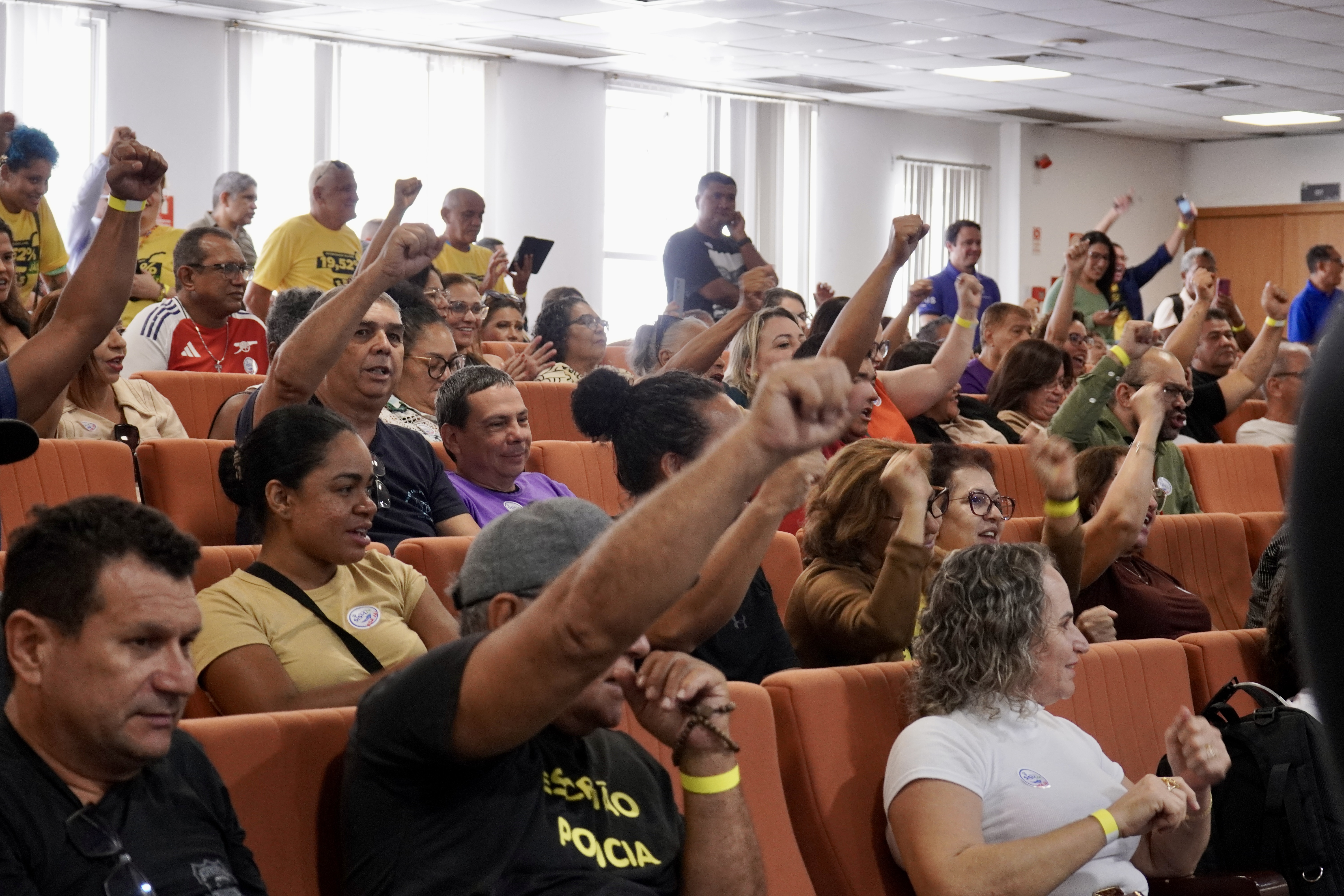 A mobilização ocorreu durante a sessão extraordinária da Casa e teve como principal objetivo pressionar os deputados a garantir celeridade na tramitação do projeto de lei do Executivo que trata da RGA.